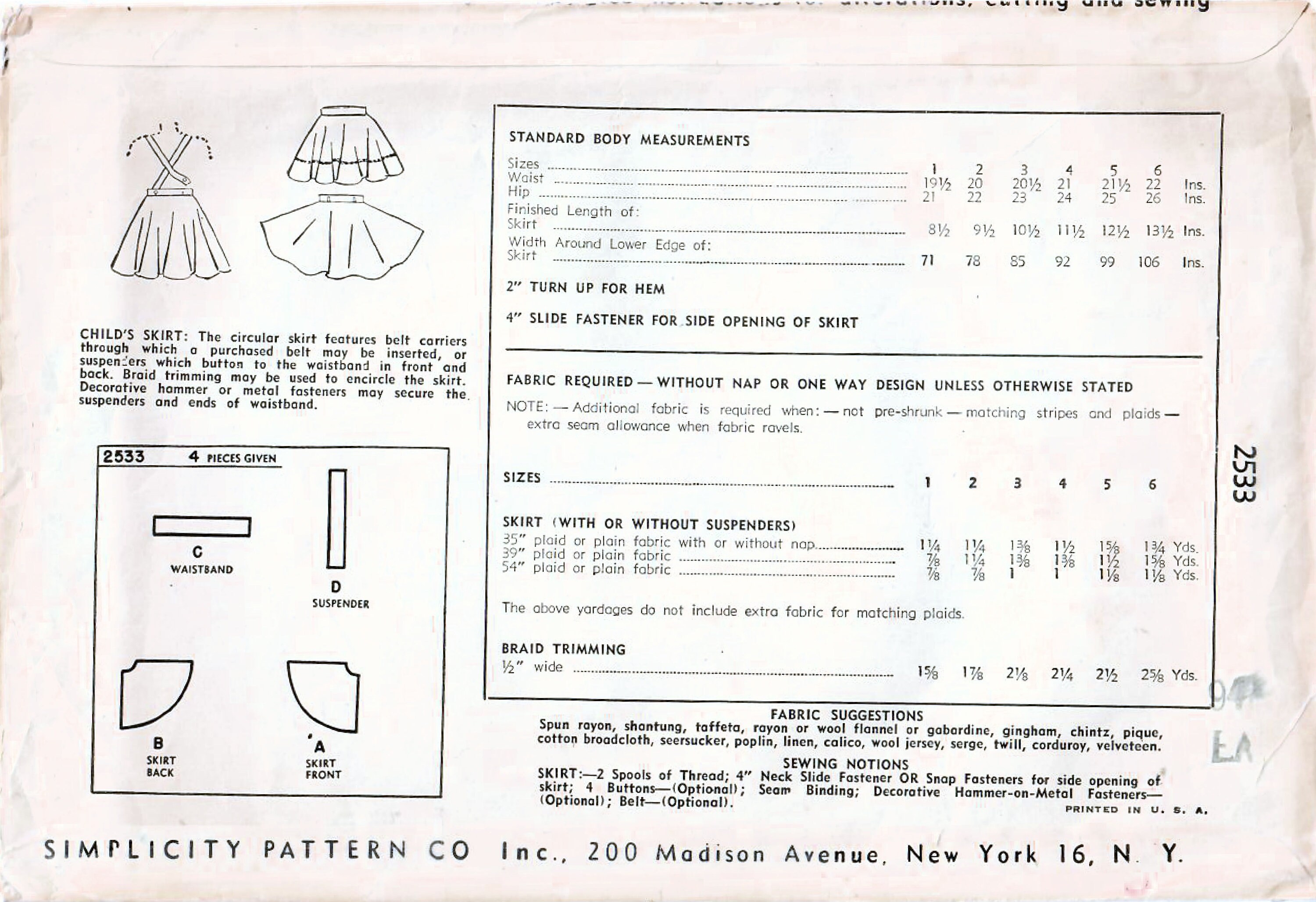 1940s Simplicity 2533 Vintage Sewing Pattern Girls Full Circle Etsy