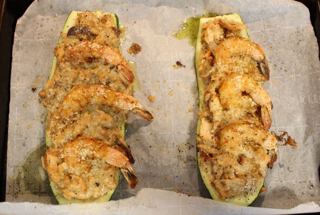 Low Carb Salmon And Shrimp Zucchini Boats W Cheesy Mushroom