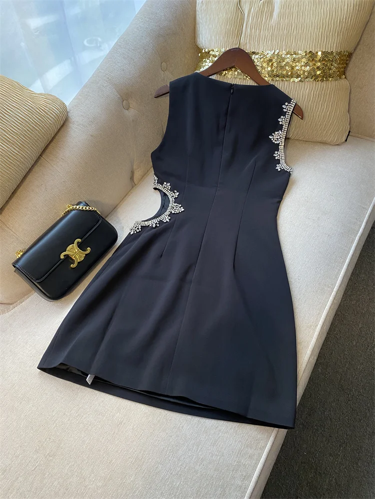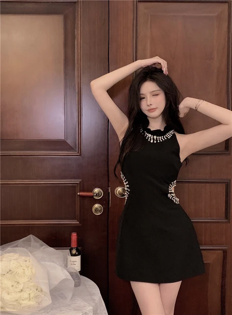 Short Black Dress Rhinestones Elegant Short Rhinestone Dress 2023 Autumn Winter Aliexpress